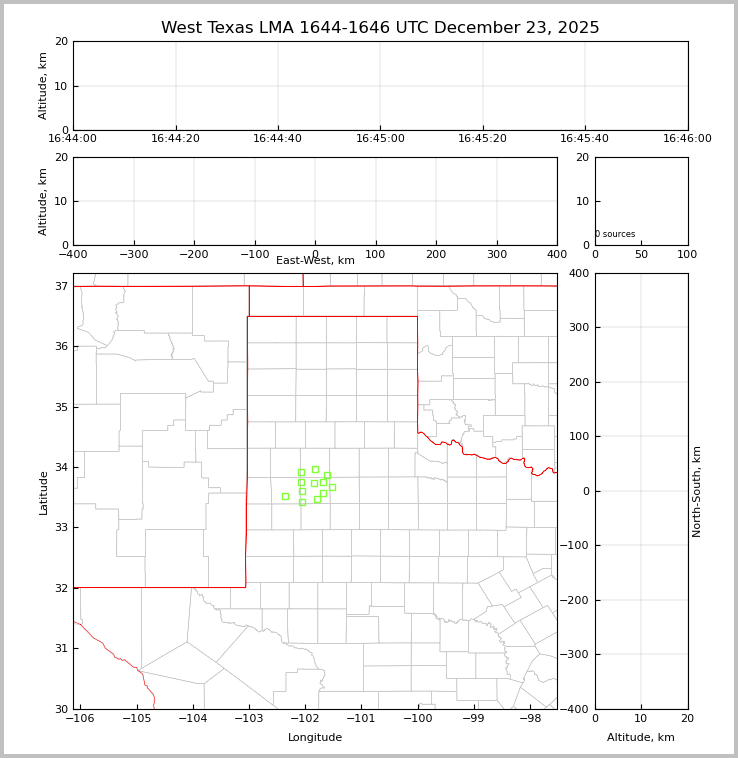 West Texas LMA Current 2-Minute Points Plot (Color by Time)